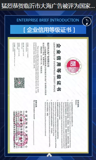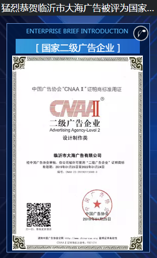 恭賀臨沂大海廣告被評為國家二級廣告企業(yè)